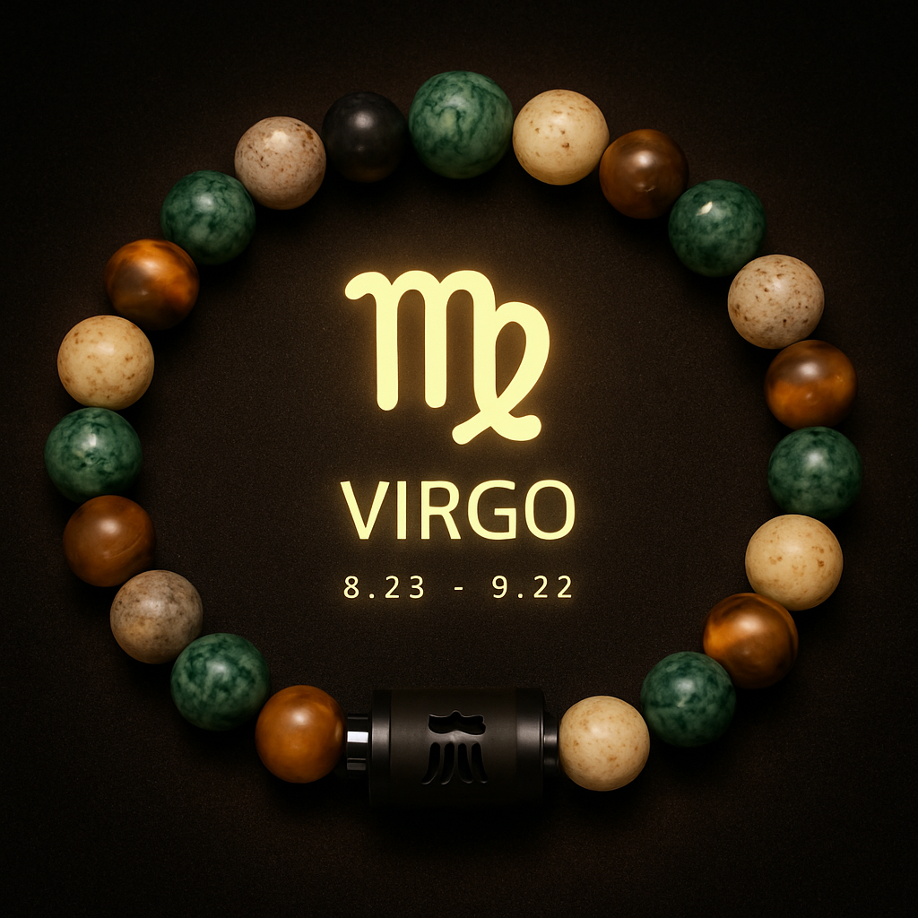 Ein Armband für strukturierte Seelen. Inspiriert vom Sternzeichen Jungfrau, unterstützt dich dieses Schmuckstück mit ruhiger Konzentration und innerer Ordnung – für Tage, an denen du dich auf das Wesentliche fokussierst.